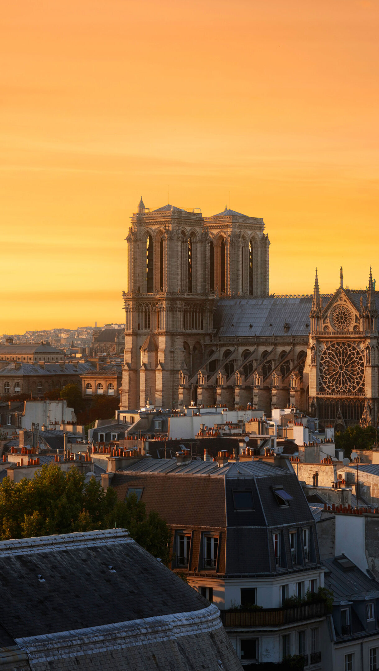 Notre Dame Cathedral Paris France Sunset Cityscape Wallpaper