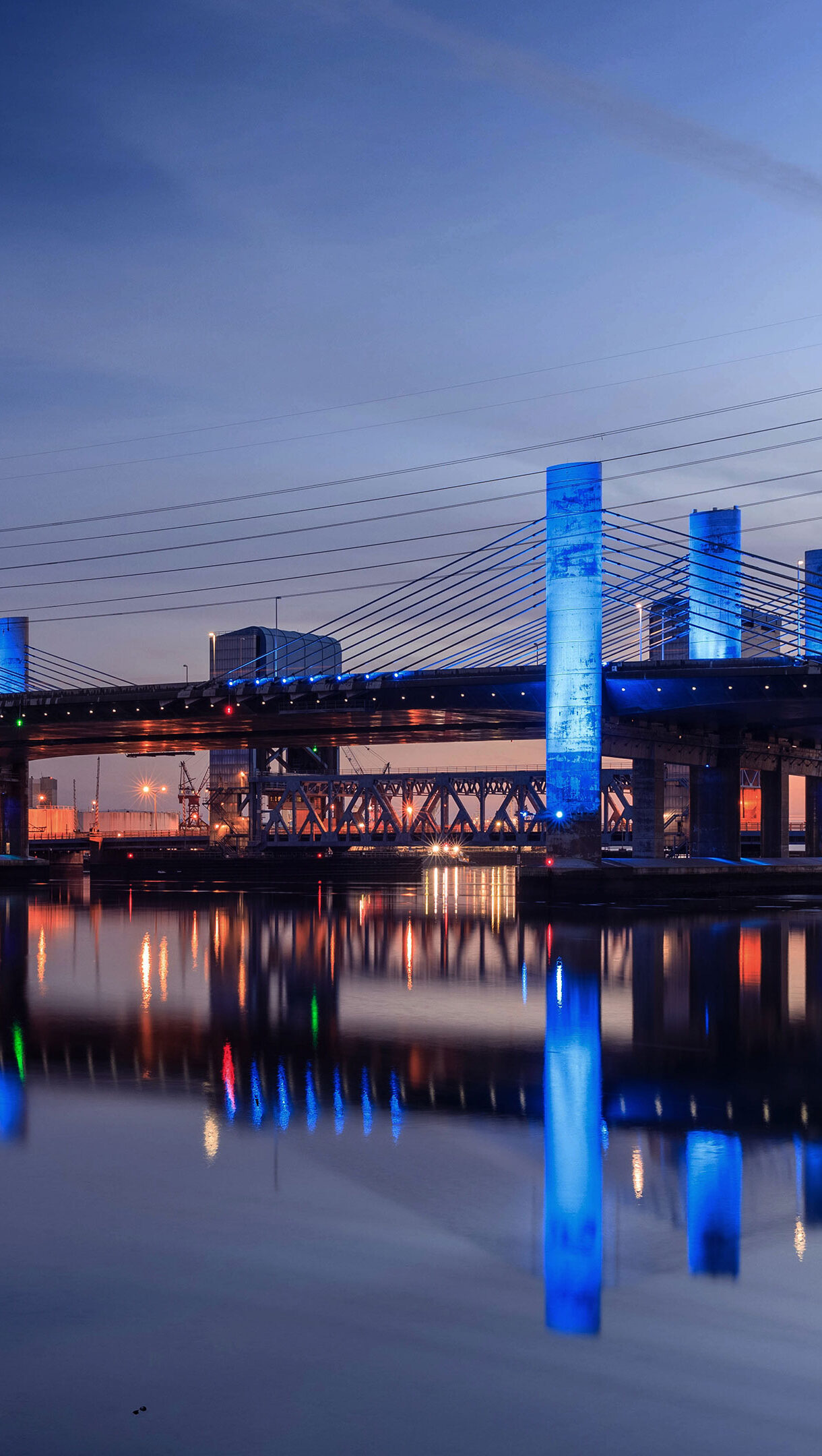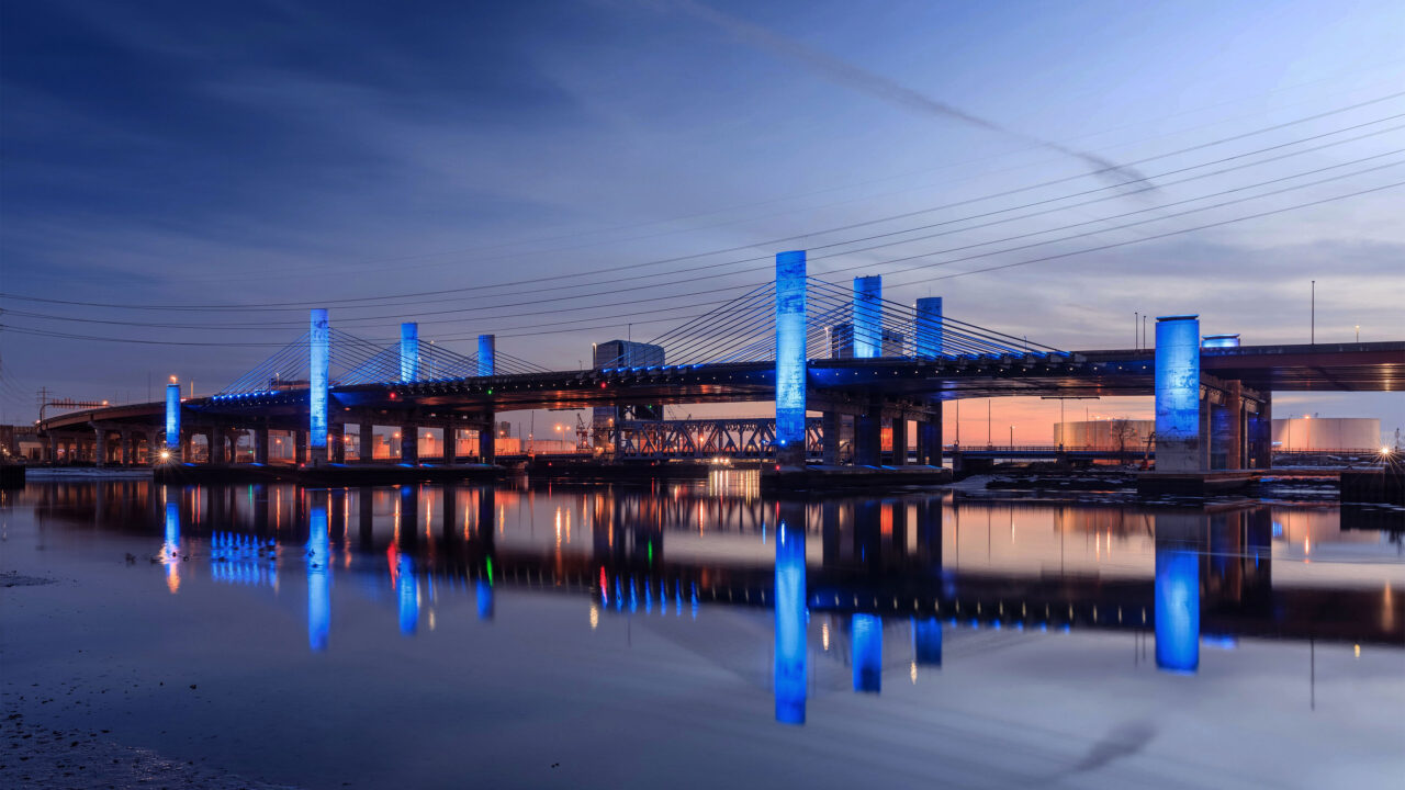 Pearl Harbor Memorial Bridge New Haven Blue Lights Reflection Wallpaper
