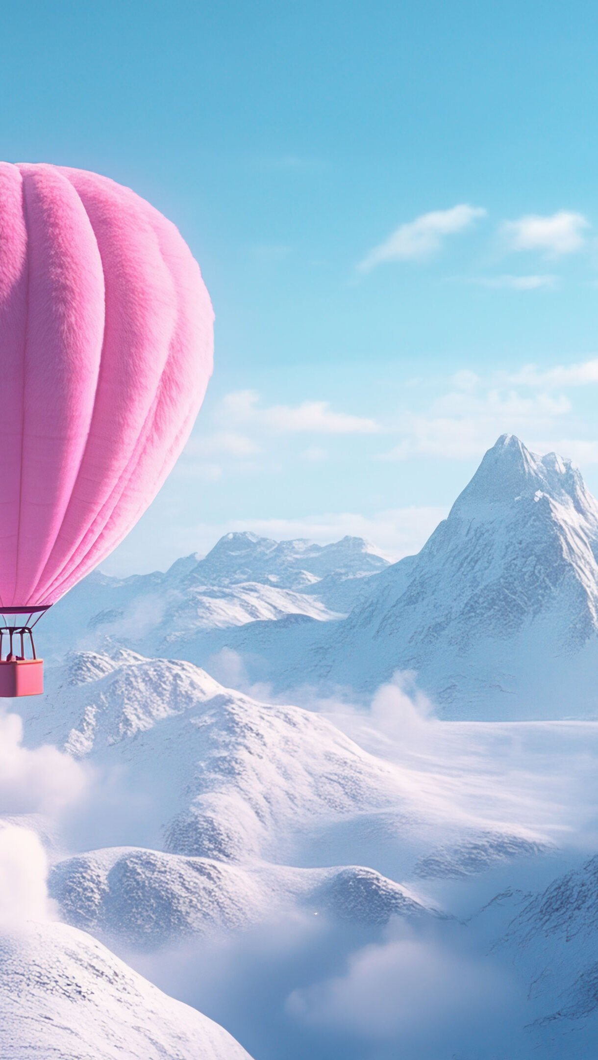 A whimsical 4K wallpaper featuring a pink furry hot air balloon floating gracefully in a dreamy sky. The soft, fluffy texture of the balloon contrasts beautifully with the pastel-toned clouds, creating a surreal and imaginative scene perfect for fantasy and aesthetic lovers. Simply click the download button to bring this masterpiece to life on your screen as a desktop wallpaper or save it for later in your picture collection.