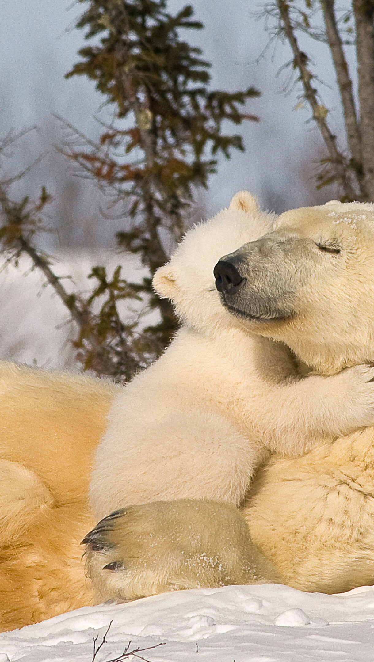 Polar Bear Mother And Cub Embrace In Snow, Churchill Manitoba Wallpaper