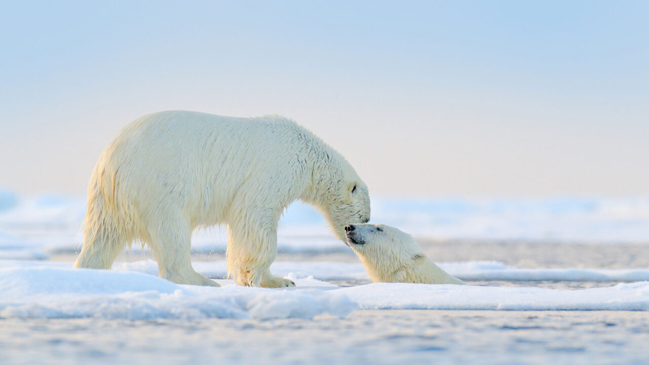 Polar Bears Playing On Arctic Ice And Water Wallpaper