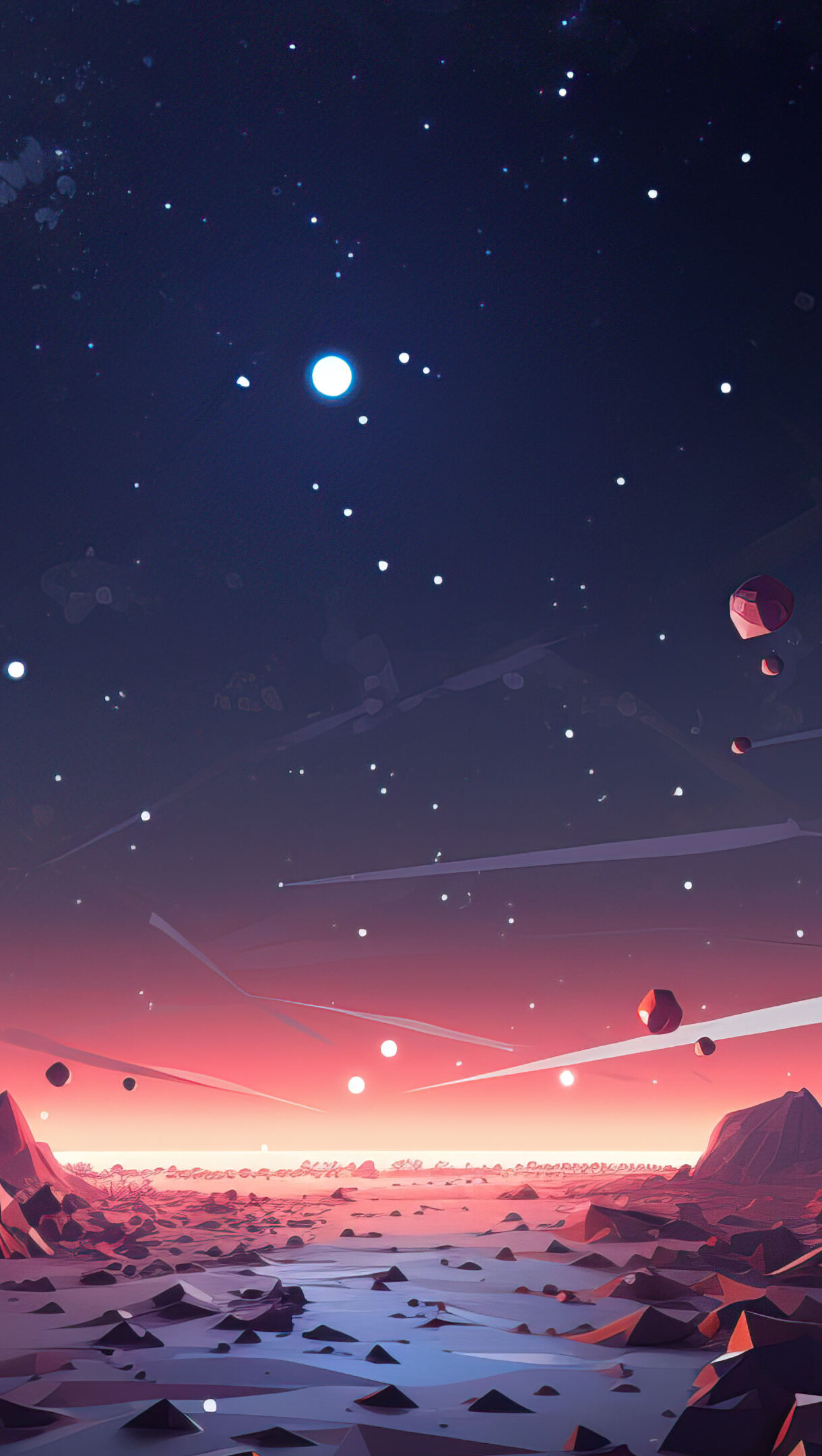 A mesmerizing 4K wallpaper featuring a polygonal space landscape with intricate geometric shapes and vibrant colors. This AI-generated artwork captures a stunning cosmic scene filled with stars and galaxies, creating a futuristic and captivating visual experience for your desktop or mobile background.