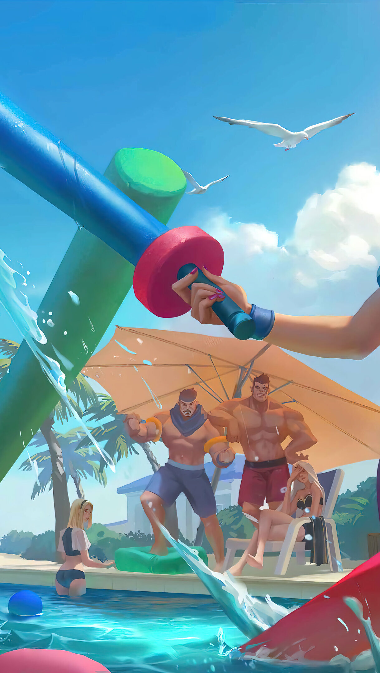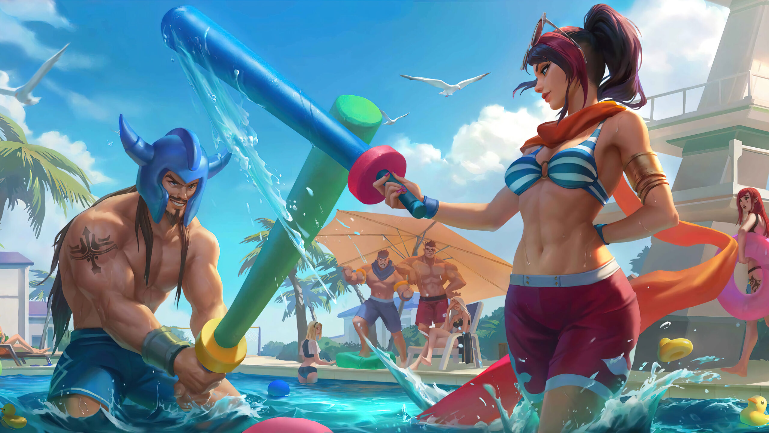 Enjoy the summer vibes with this stunning 4K wallpaper featuring the Pool Party Fiora Skin from League of Legends. Unleash Your Inner Creativity with High-Quality Wallpapers. AI-generated and sourced wallpapers available in High Quality Resolution. Simply click the download button to bring these masterpieces to life on your screen as a desktop wallpaper or save it for later in your picture collection.