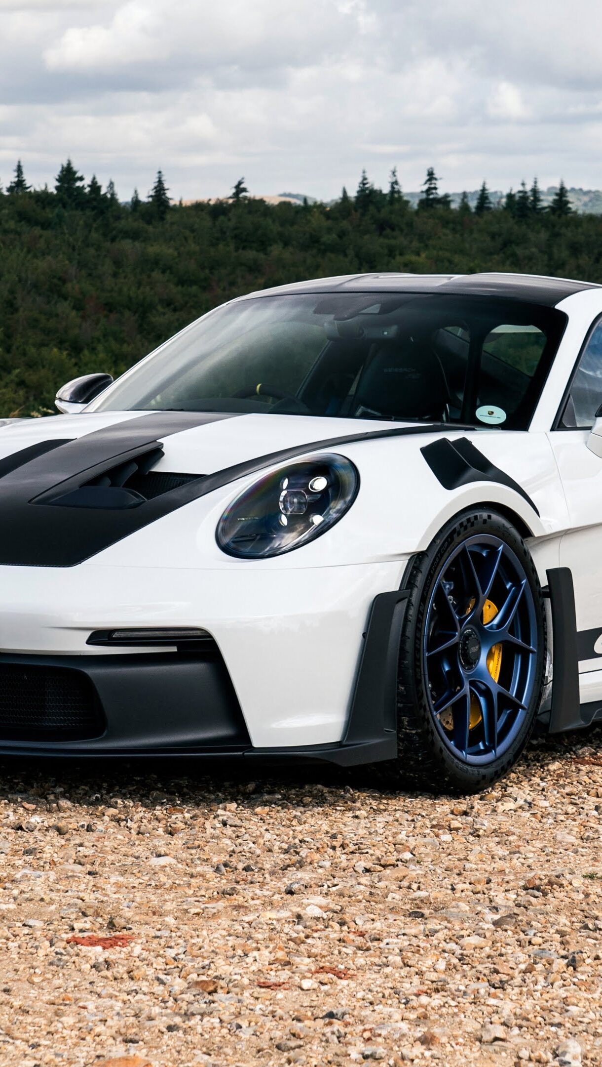 A high-resolution 4K wallpaper featuring the iconic Porsche 911 GT3 RS, a symbol of high-performance and luxury in the automotive world, capturing its dynamic design and speed prowess. Simply click the download button to bring this masterpiece to life on your screen as a desktop wallpaper or save it for later in your picture collection.