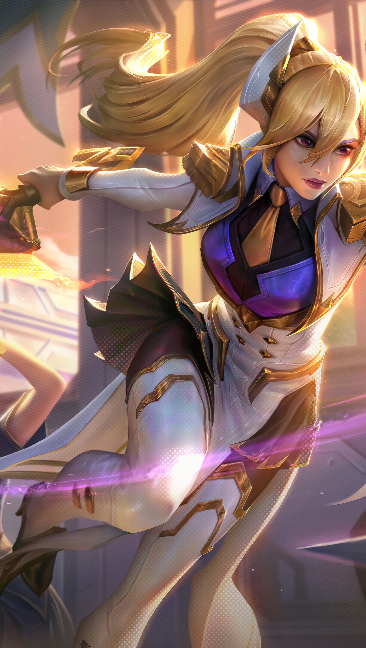 A stunning 4K wallpaper featuring the Prestige Battle Academia Leona skin from League of Legends. Leona, a valiant champion of justice, is showcased in her prestigious attire, radiating power and elegance. Simply click the download button to bring this masterpiece to life on your screen as a desktop wallpaper or save it for later in your picture collection.