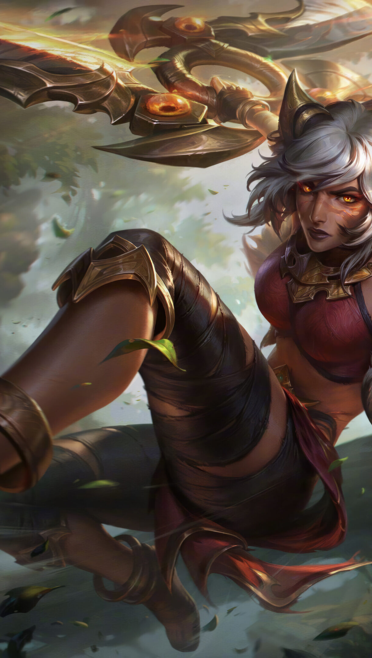 A mesmerizing 4K wallpaper showcasing the ferocious Primal Ambush Sivir skin in the vast world of League of Legends. Sivir, the Battle Mistress, stands in a dynamic and powerful stance, surrounded by primal energies and ready for combat in this stunning visual masterpiece. Simply click the download button to bring this masterpiece to life on your screen as a desktop wallpaper or save it for later in your wallpaper collection.