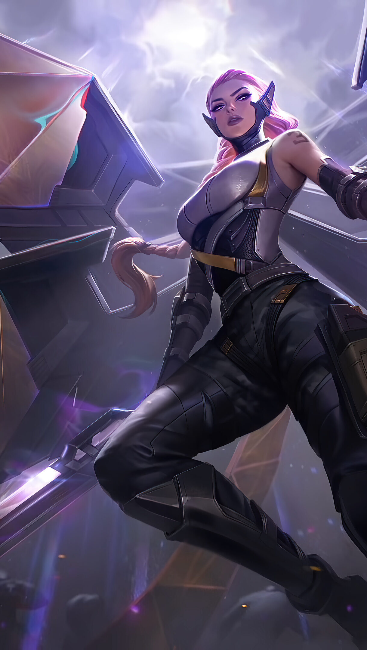A captivating 4K wallpaper featuring the Psyops Kayle skin from League of Legends. Kayle, the righteous angelic warrior, is showcased in her Psyops attire, emanating a powerful energy with her glowing wings and futuristic armor. Simply click the download button to bring this masterpiece to life on your screen as a desktop wallpaper or save it for later in your picture collection.