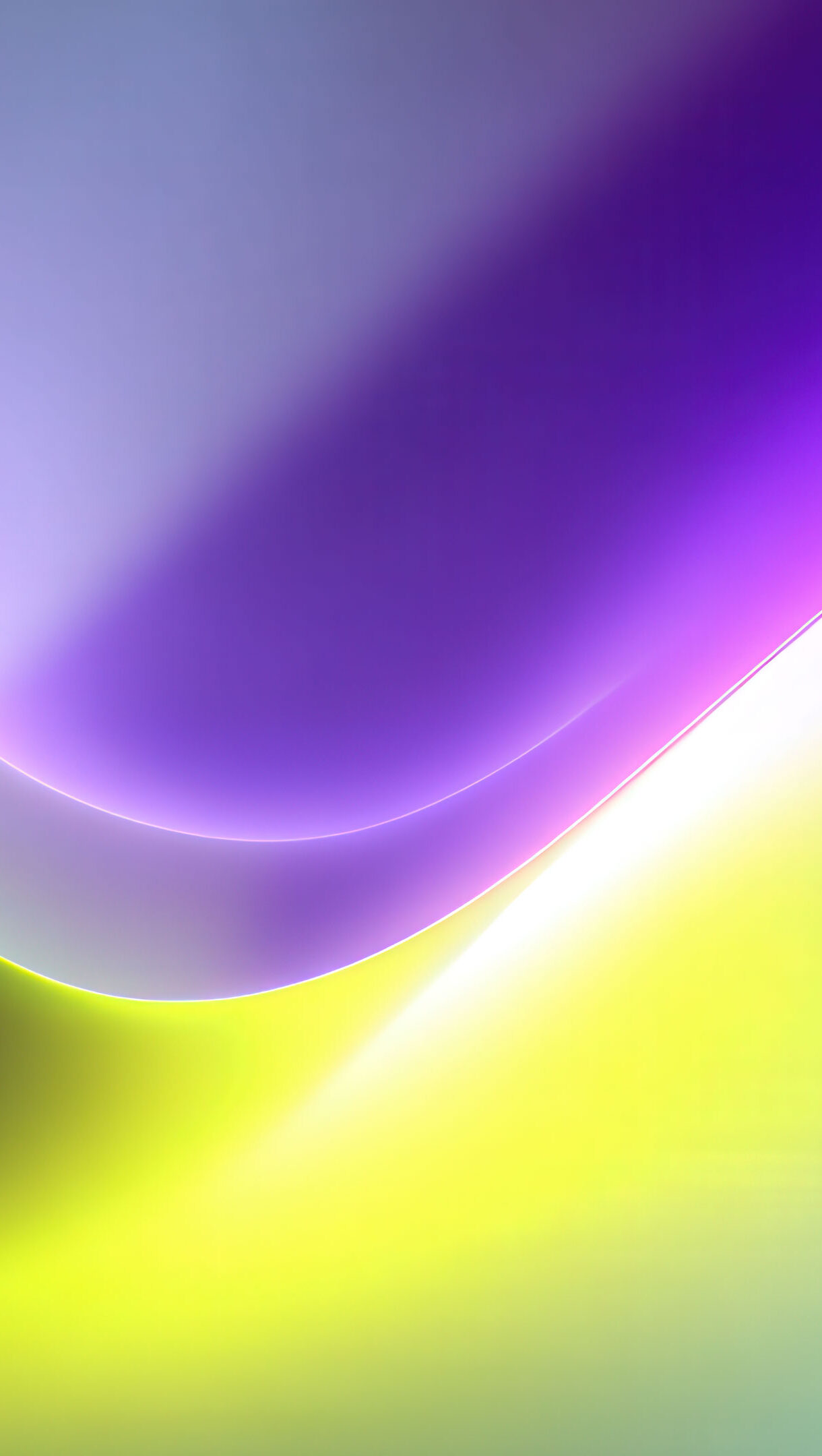 A vibrant 4K wallpaper showcasing smooth, flowing abstract waves formed by blending colors. These dramatic gradients transition from deep purple and dark green through bright yellow to soft blue and light violet, creating a dynamic and luminous visual experience.