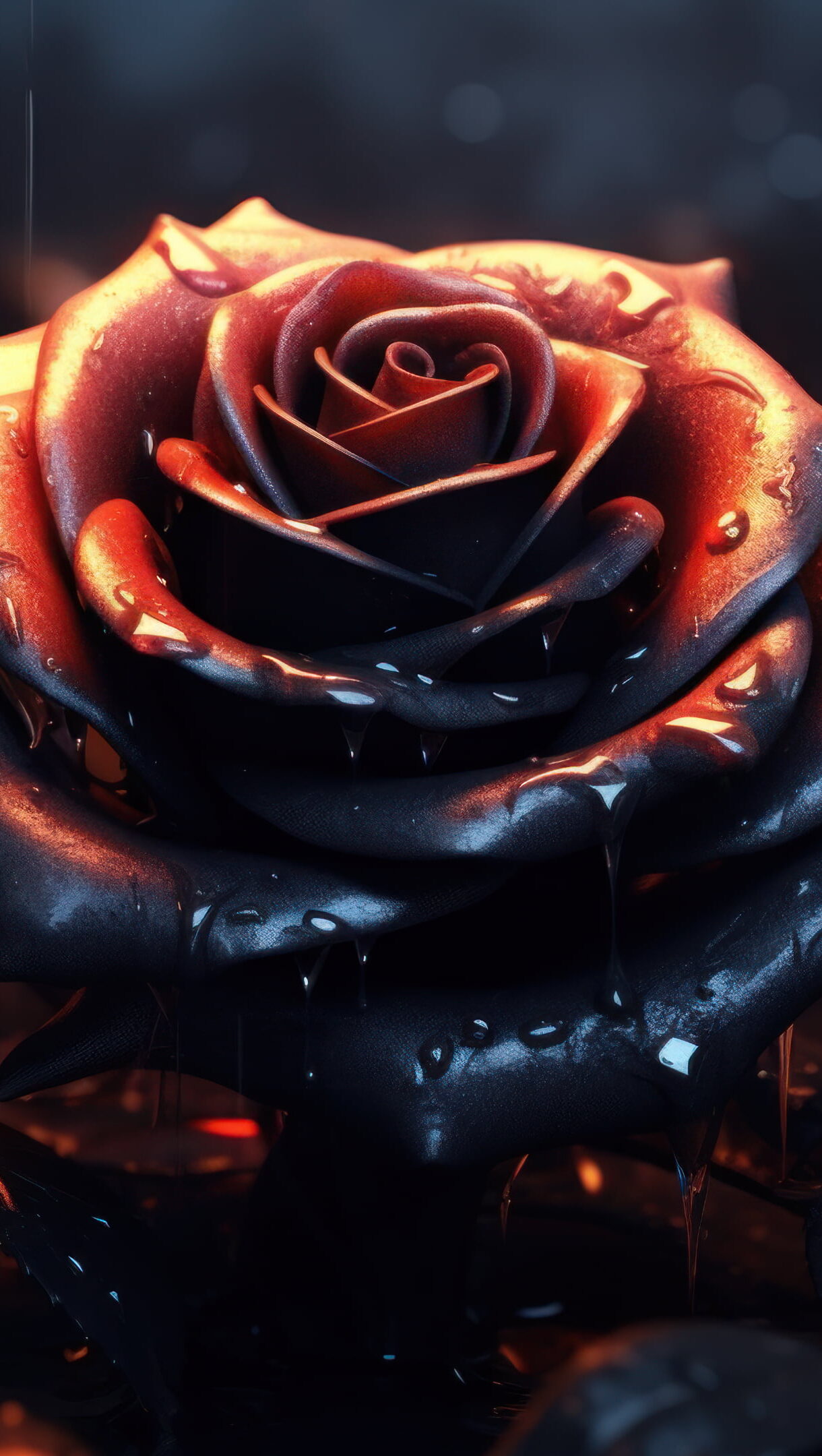 Rain Dark Rose 4K Wallpaper