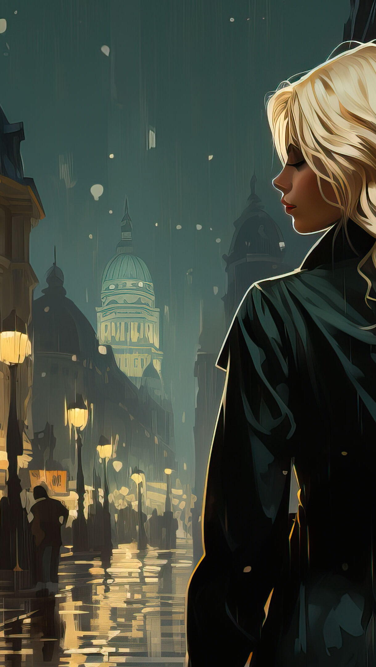 A stunning 4K wallpaper featuring an urban landscape during a rainy evening. The city lights reflect on wet streets, creating a captivating atmosphere. Ideal for setting as your desktop or mobile wallpaper.