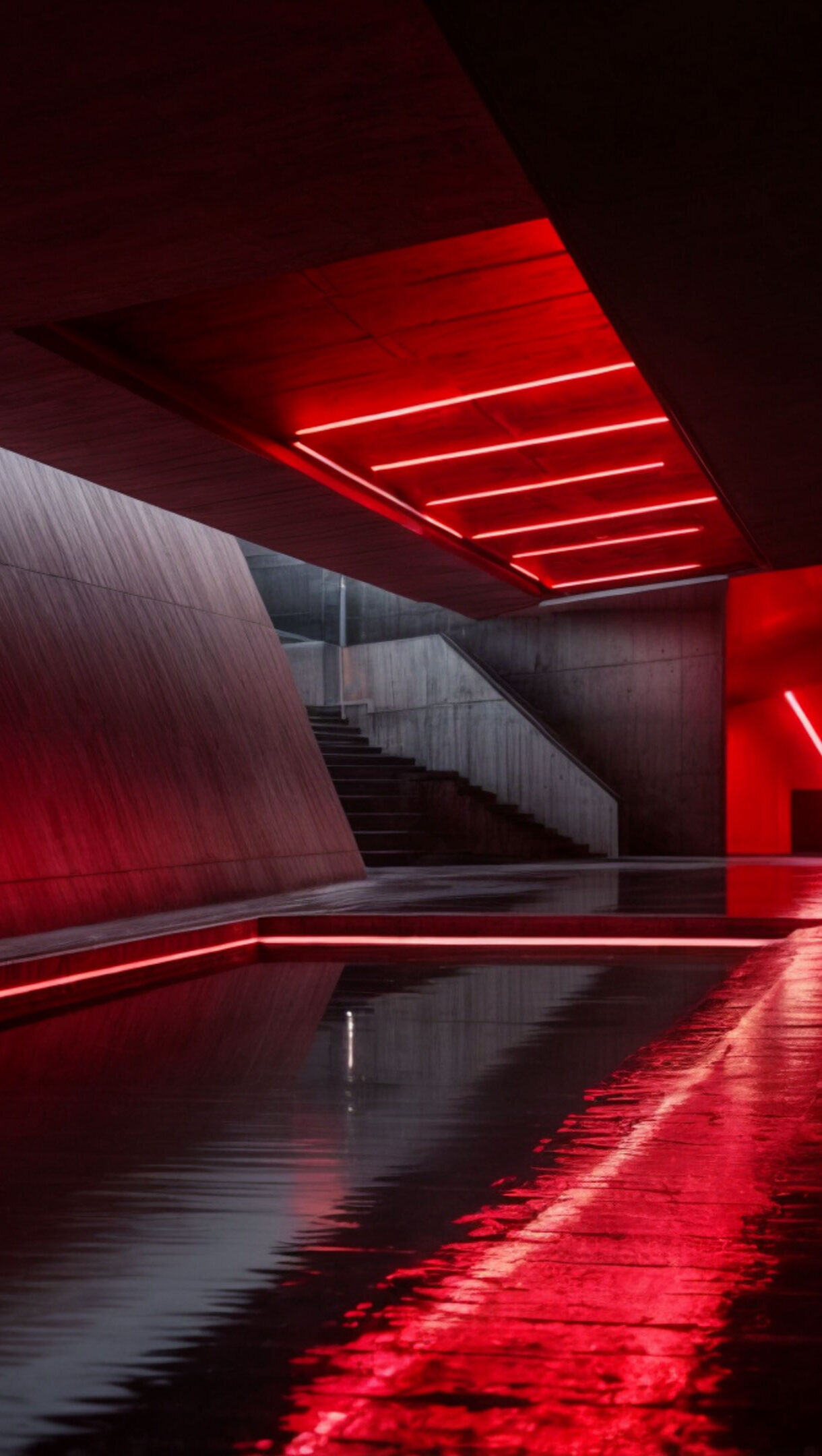 Red Neon Hallway 4K Wallpaper