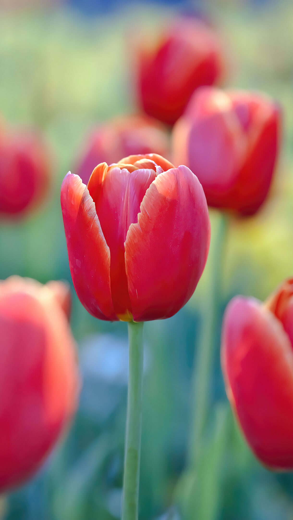Experience the beauty of nature with this stunning 4K wallpaper featuring a vibrant and colorful red tulips flower nature scenery. Unleash Your Inner Creativity with High-Quality Wallpapers. AI-generated and sourced wallpapers available in High Quality Resolution. Simply click the download button to bring these masterpieces to life on your screen as a desktop wallpaper or save it for later in your picture collection.