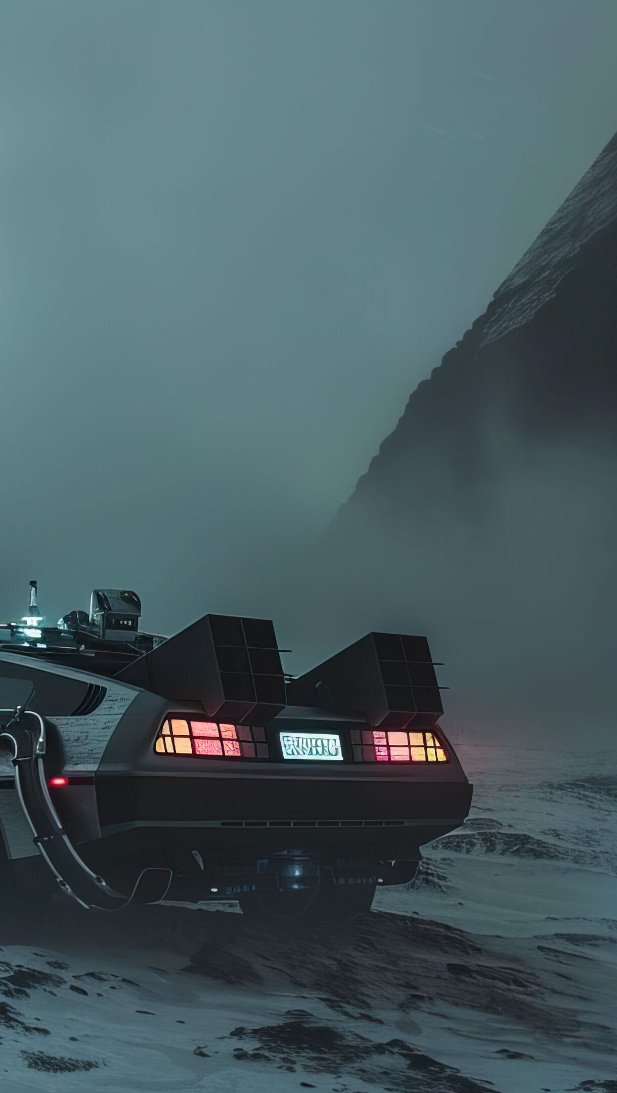 A mesmerizing 4K wallpaper featuring a vintage car parked in an eerie landscape under the dusky sky. The retro car stands out against the haunting backdrop of barren trees and mysterious surroundings, creating a surreal atmosphere. Ideal for adding a touch of nostalgia and mystery to your desktop or mobile screen.