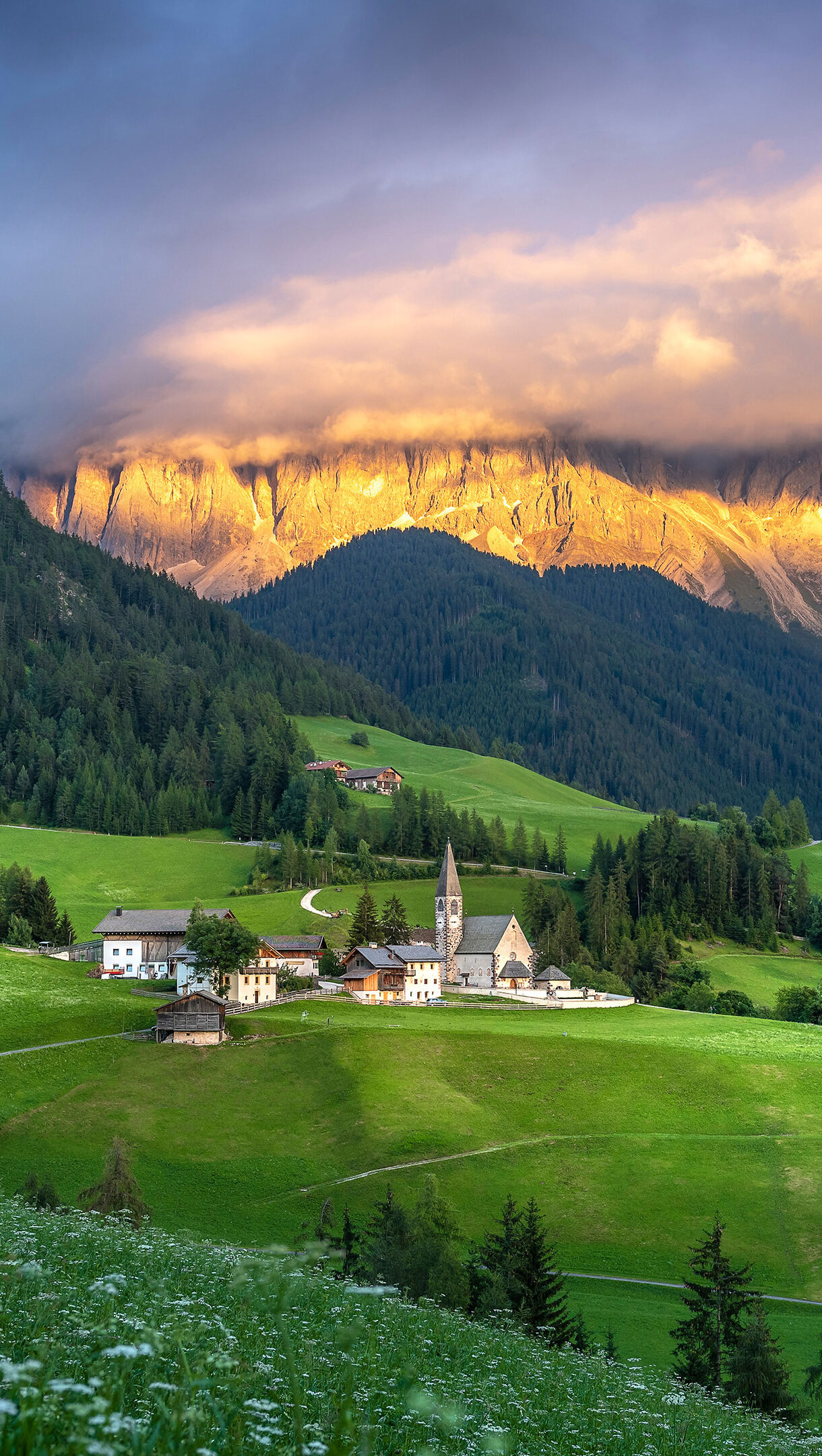Santa Maddalena Dolomites: Golden Hour Mountain Village Wallpaper