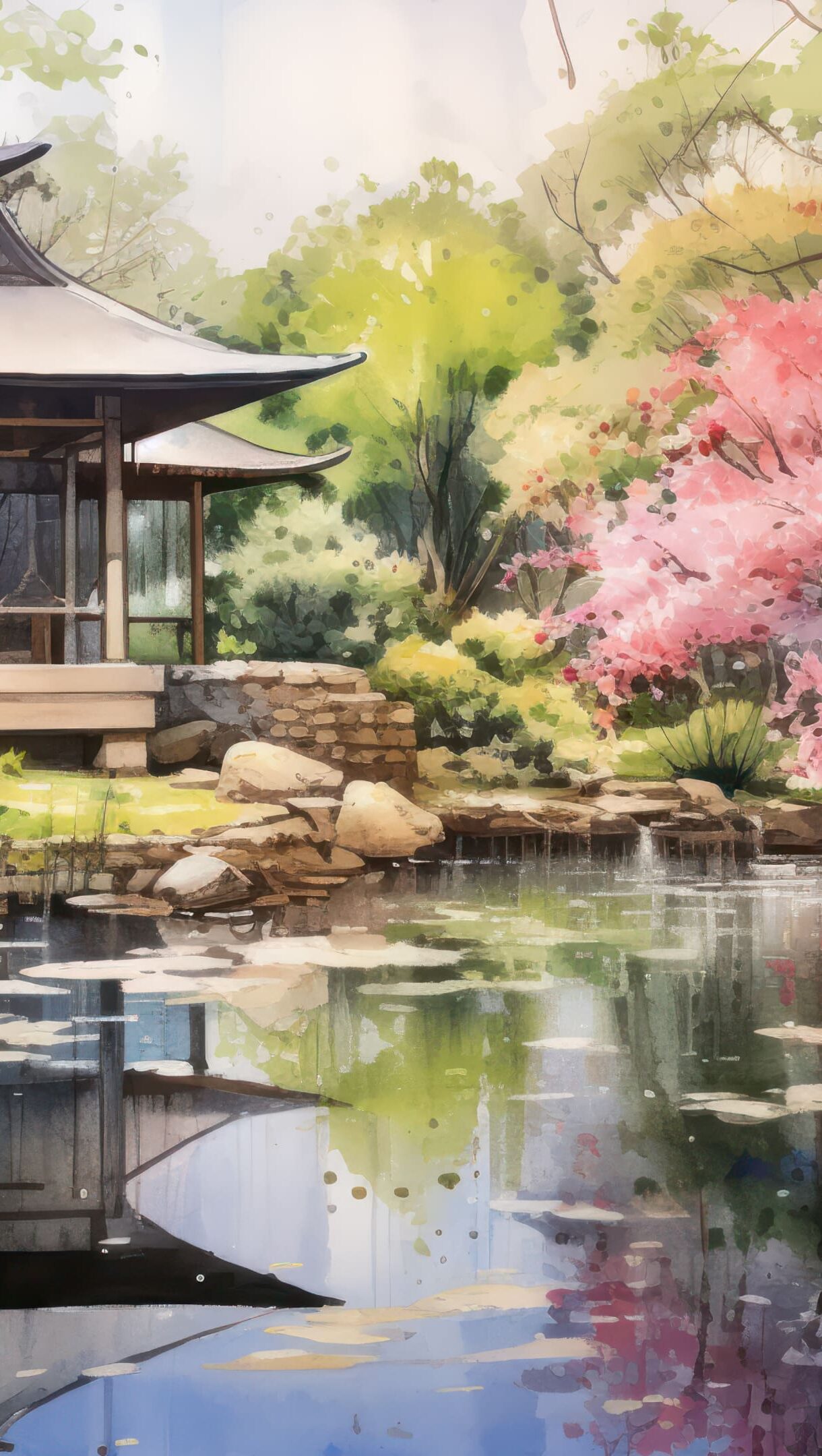 Imagine the tranquility of a serene Japanese garden portrayed in a watercolor style through this AI-generated 4K wallpaper. It encapsulates a peaceful ambiance, perfect for high-resolution displays, evoking the essence of a traditional Japanese garden in an artistic form. Simply click the download button to bring this masterpiece to life on your screen as a desktop wallpaper or save it for later in your picture collection.