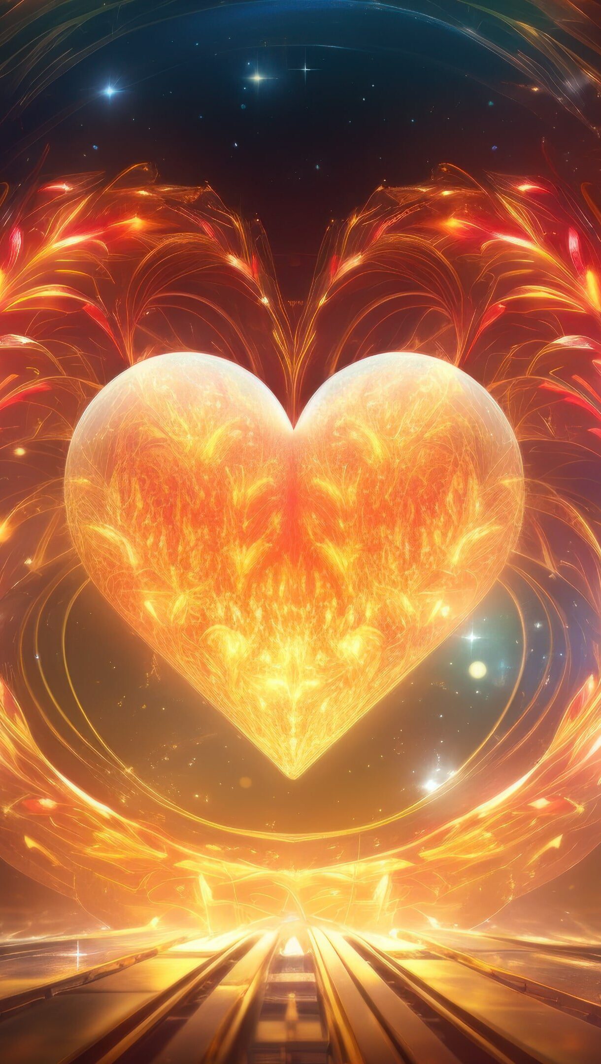 A captivating 4K wallpaper featuring an AI-generated shiny gold heart, radiating brilliance against a dark background. The intricate details and shimmering hues create an enchanting visual spectacle, perfect for adorning your screen. Simply click the download button to bring this masterpiece to life on your screen as a desktop wallpaper or save it for later in your wallpaper collection.