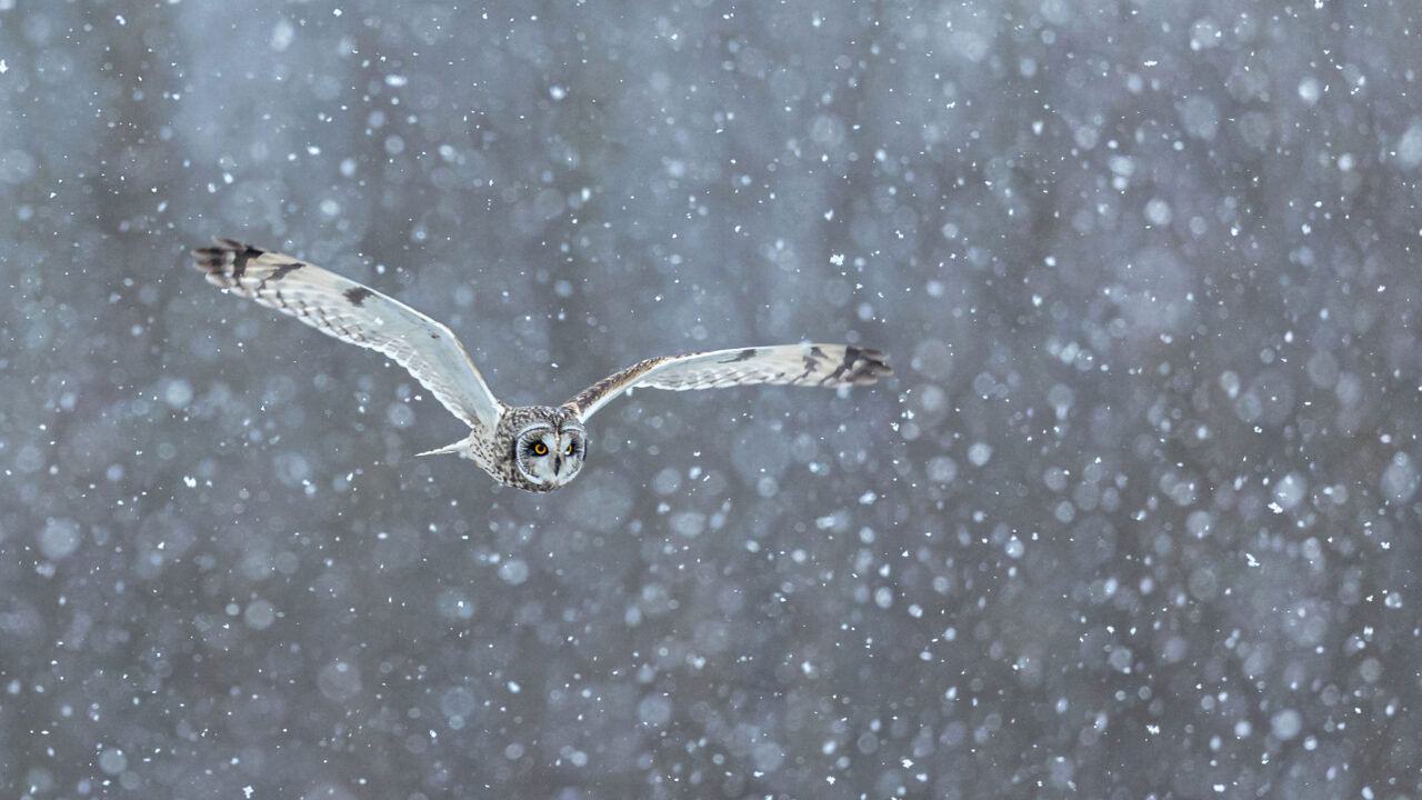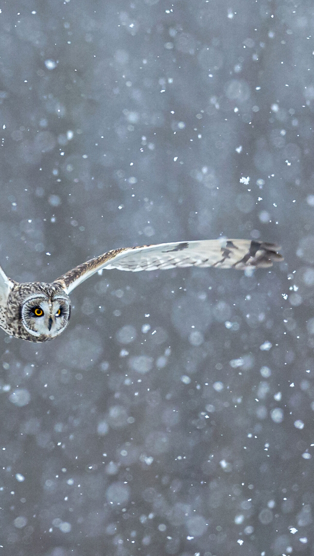 Short-eared Owl Hunting In Heavy Snow Wallpaper