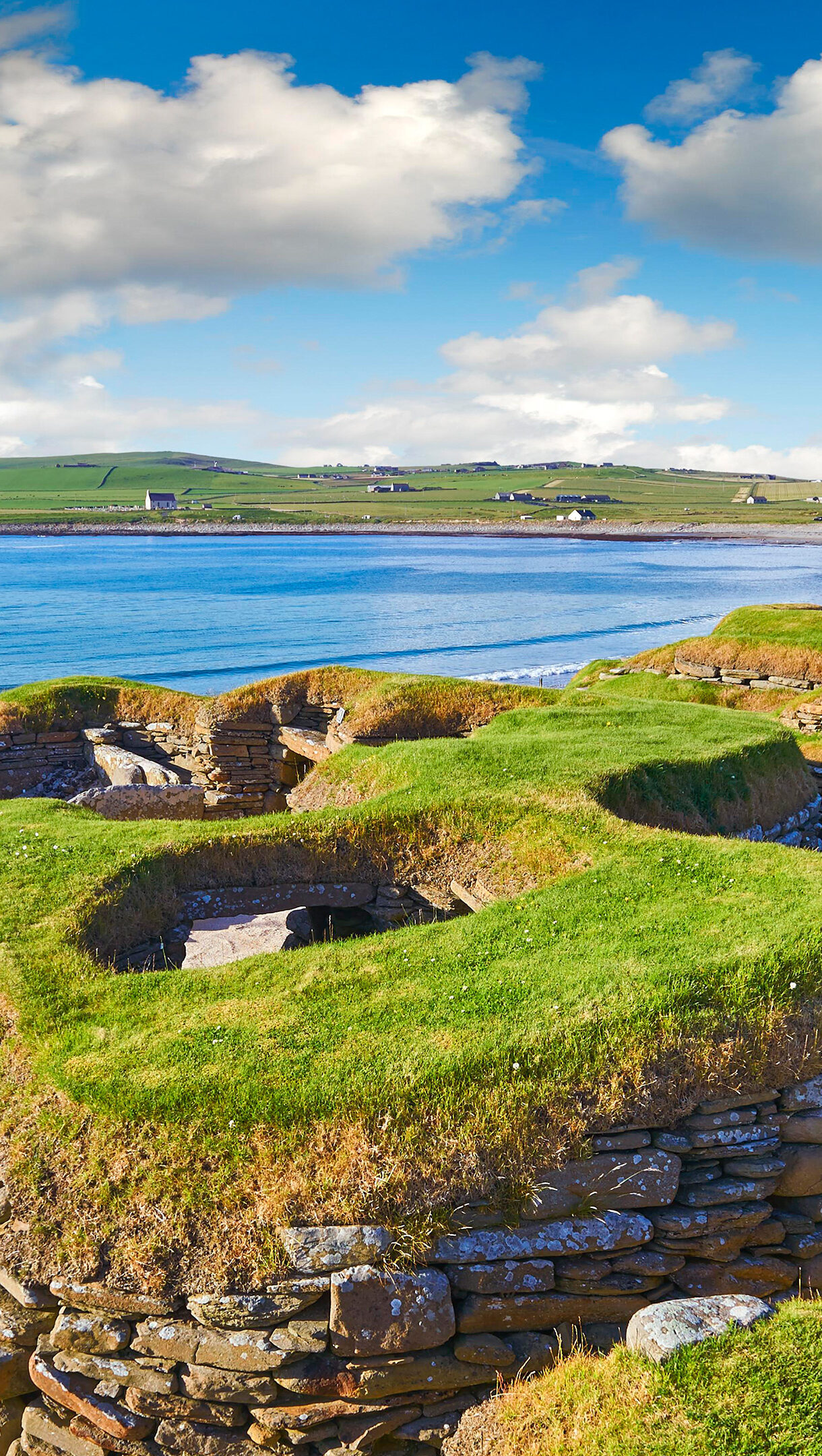 Skara Brae Neolithic Settlement Coastal Landscape Wallpaper