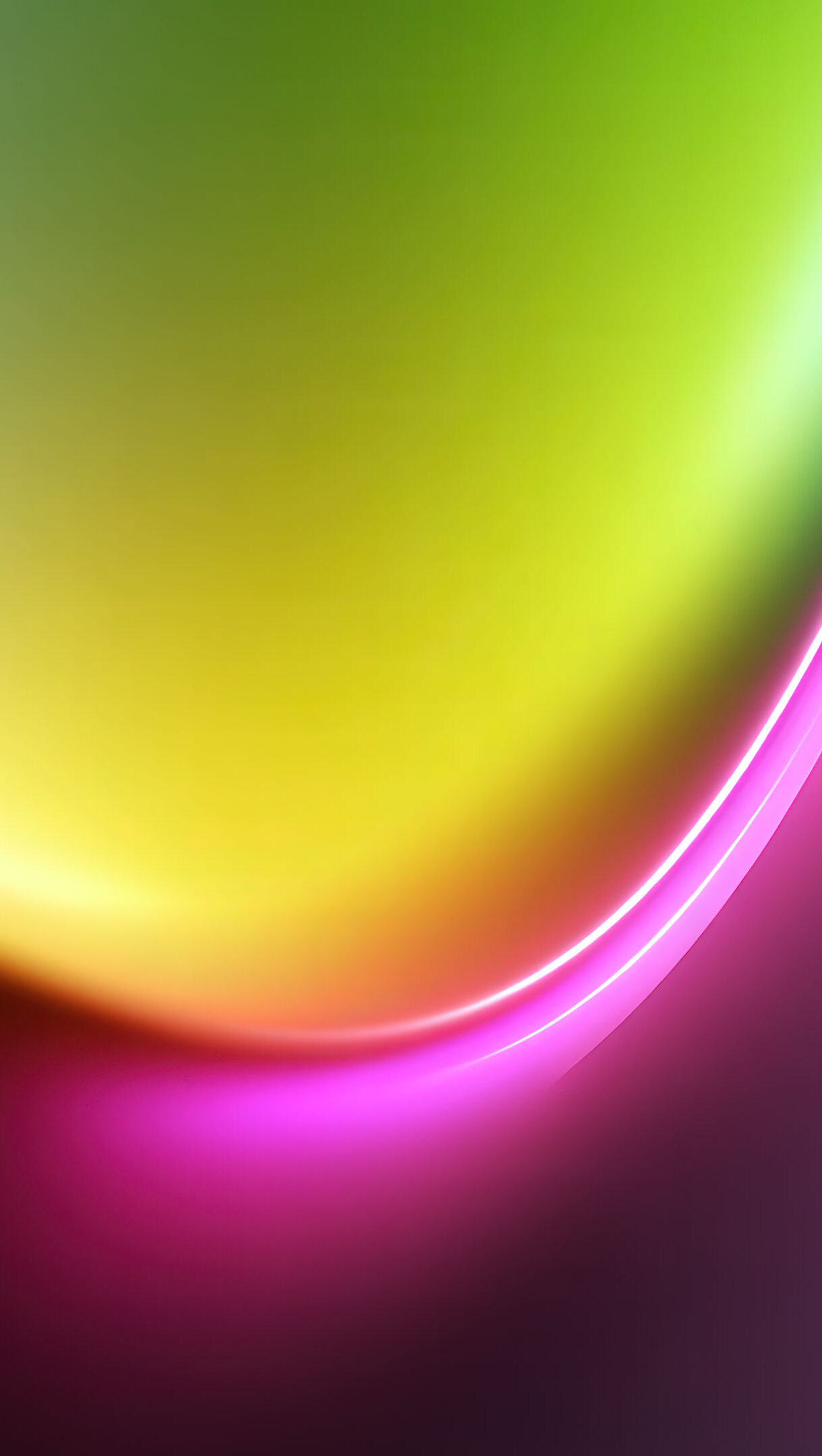 An abstract soft glow ripple of vibrant colors, featuring luminous waves of green, yellow, and magenta, creating a captivating and fluid visual against a transitioning dark background.