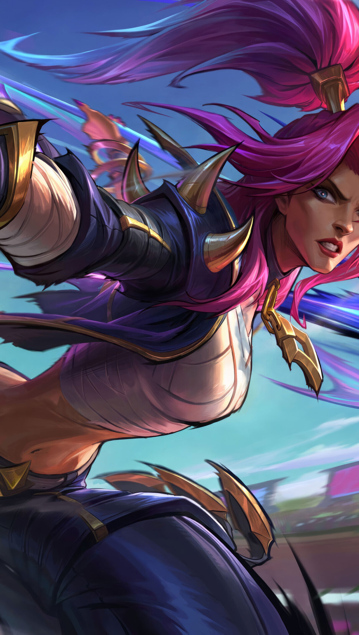A stunning 4K wallpaper featuring the Soul Fighter Kalista skin from Wild Rift. Kalista, the Spear of Vengeance, is depicted in a dynamic and fierce stance, her spectral armor glowing with ethereal energy, set against a backdrop of haunting beauty within the League of Legends universe. Simply click the download button to bring this masterpiece to life on your screen as a desktop wallpaper or save it for later in your picture collection.