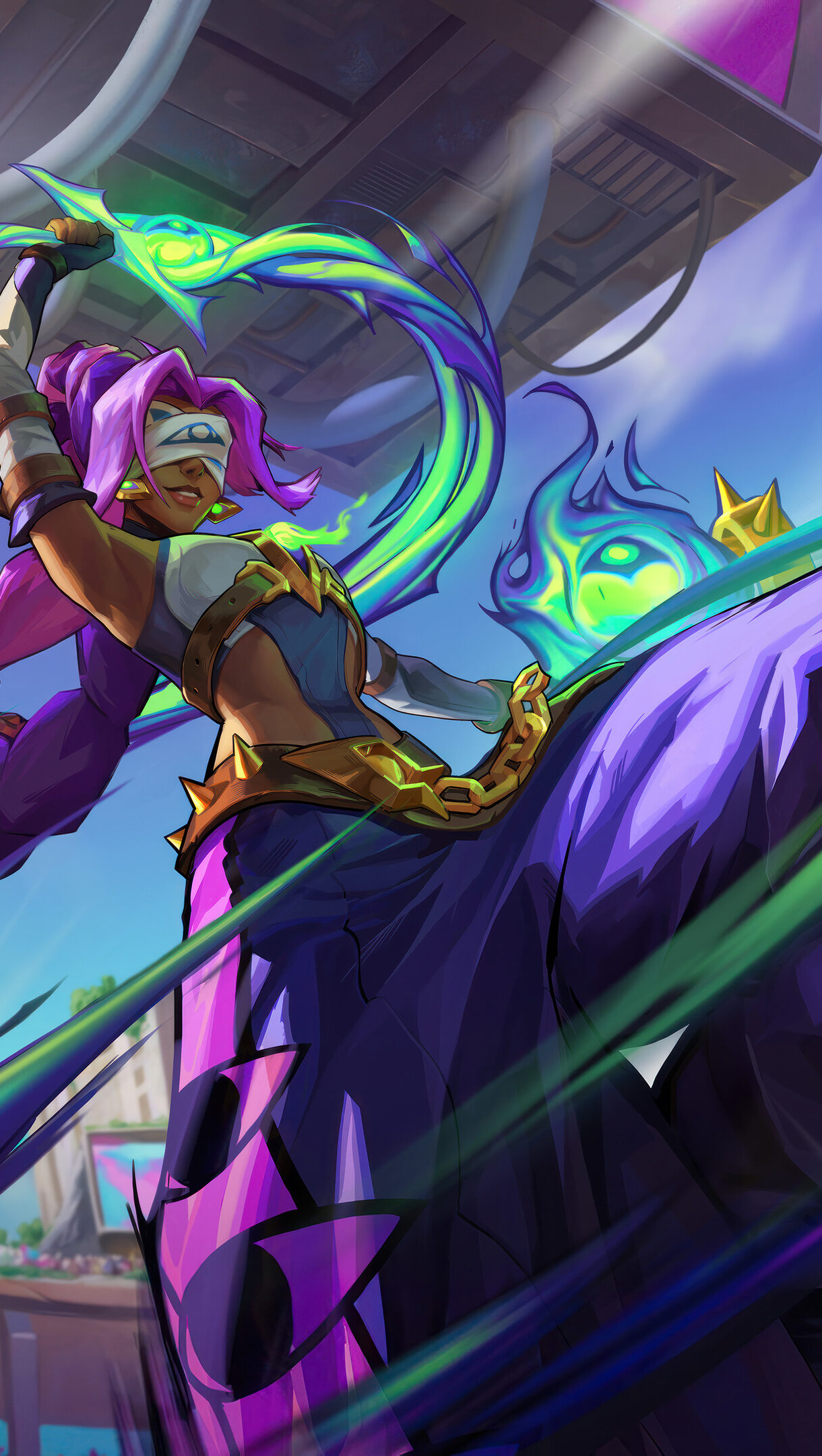 A captivating 4K wallpaper showcasing the Soul Fighter Nilah skin from League of Legends. Nilah, a powerful warrior, is depicted in her stunning skin with intricate details and fiery effects, radiating strength and determination. Simply click the download button to bring this masterpiece to life on your screen as a desktop wallpaper or save it for later in your picture collection.