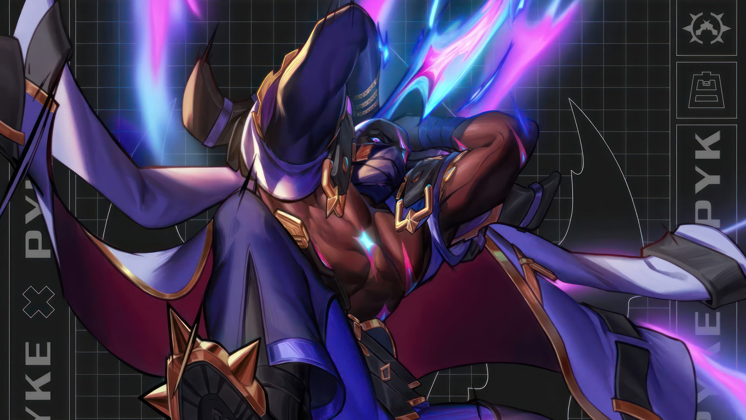 Immerse yourself in the darkness with this 4K wallpaper showcasing the Soul Fighter Pyke skin from League of Legends. Pyke, the Bloodharbor Ripper, appears as a fearsome and deadly soul hunter. Simply click the download button to bring this masterpiece to life on your screen as a desktop wallpaper or save it for later in your picture collection.