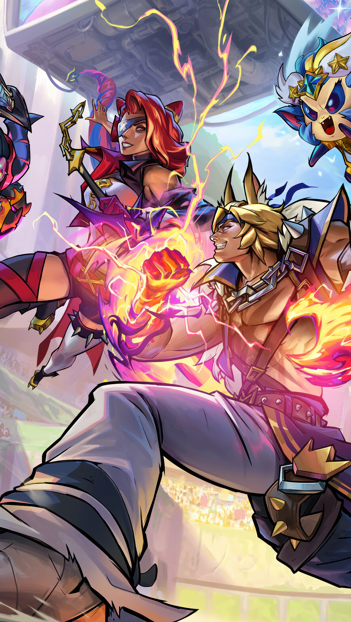 A high-quality 4K wallpaper showcasing a battle between Soul Fighter TFT champions Samira and Sett. The fierce confrontation captures the intensity and skill of these powerful champions in the Teamfight Tactics game mode. Simply click the download button to bring this masterpiece to life on your screen as a desktop wallpaper or save it for later in your picture collection.