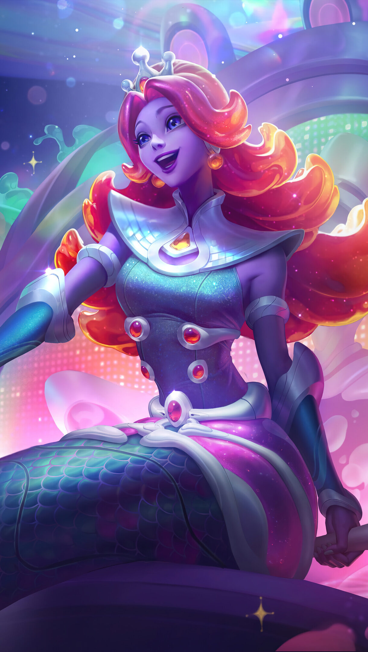 A mesmerizing 4K desktop wallpaper featuring the Space Groove Nami skin from League of Legends. Unleash Your Inner Creativity with High-Quality Wallpapers. AI-generated and sourced wallpapers available in High Quality Resolution. Simply click the download button to bring these masterpieces to life on your screen as a desktop wallpaper or save it for later in your picture collection.
