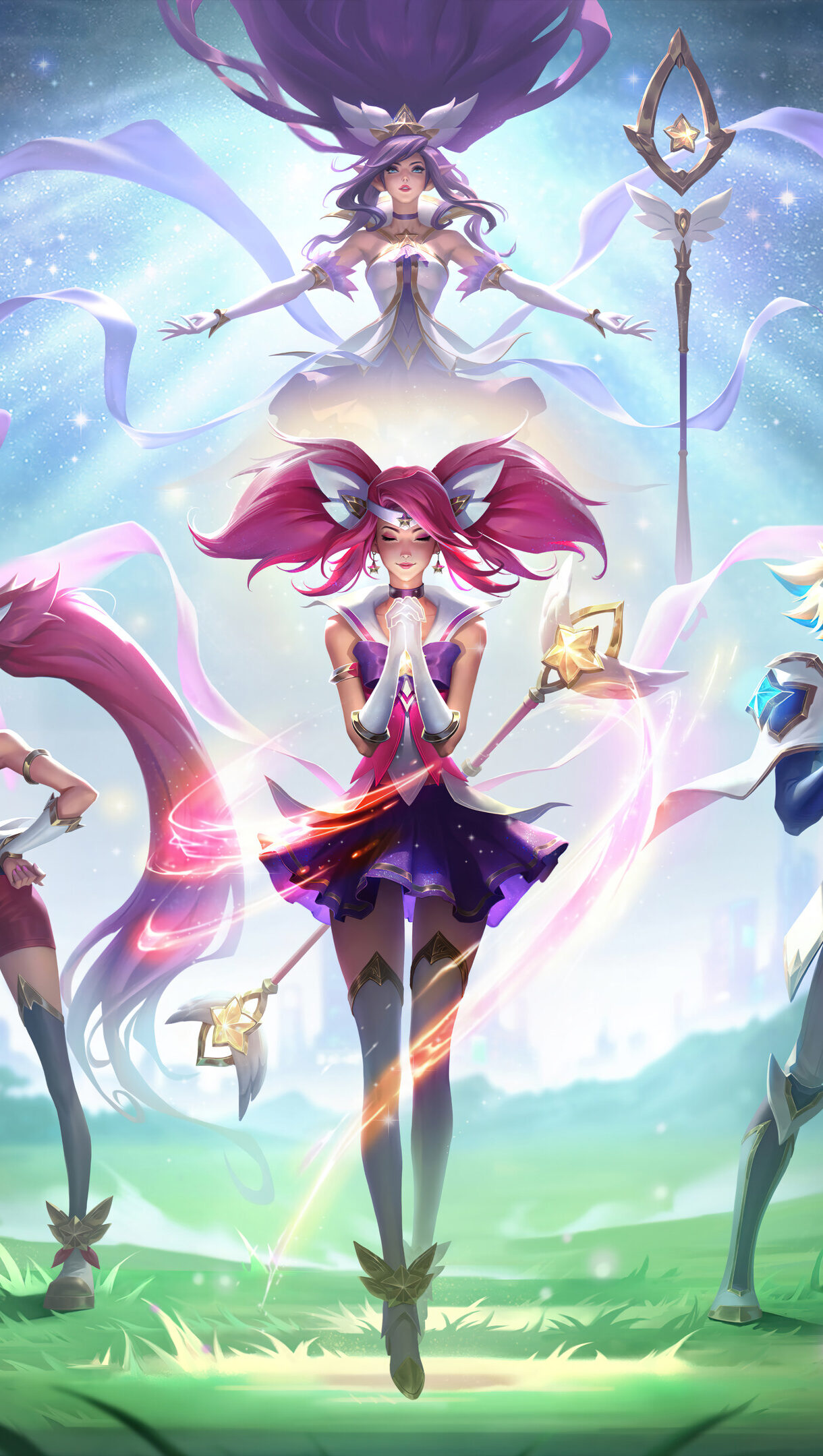A mesmerizing 4K desktop wallpaper featuring the Star Guardian skins for Lux, Jinx, Ezreal, Lulu, and Janna in League of Legends Wild Rift. Unleash Your Inner Creativity with High-Quality Wallpapers. AI-generated and sourced wallpapers available in High Quality Resolution. Simply click the download button to bring these masterpieces to life on your screen as a desktop wallpaper or save it for later in your picture collection.