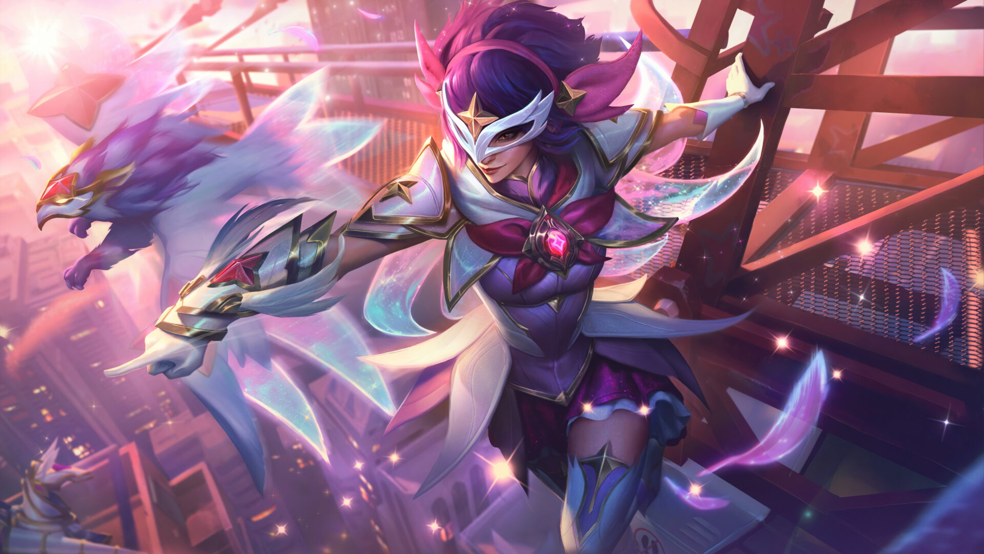 A beautiful 4K desktop wallpaper featuring the Star Guardian Quinn skin from League of Legends. Unleash Your Inner Creativity with High-Quality Wallpapers. AI-generated and sourced wallpapers available in High Quality Resolution. Simply click the download button to bring these masterpieces to life on your screen as a desktop wallpaper or save it for later in your picture collection.