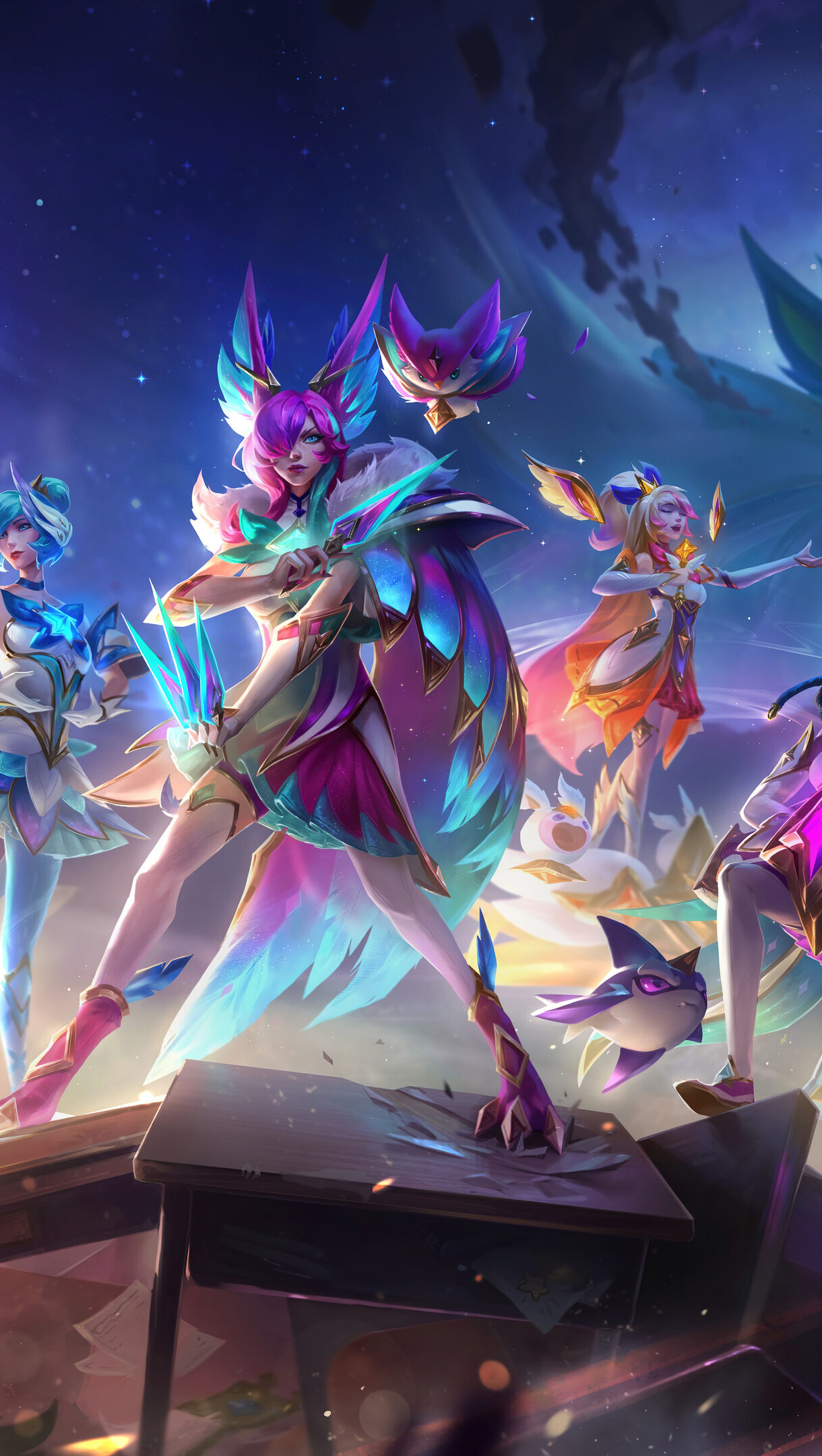 A stunning 4K desktop wallpaper featuring the Star Guardian skins for Xayah, Orianna, Senna, and Seraphine in League of Legends Wild Rift. Unleash Your Inner Creativity with High-Quality Wallpapers. AI-generated and sourced wallpapers available in High Quality Resolution. Simply click the download button to bring these masterpieces to life on your screen as a desktop wallpaper or save it for later in your picture collection.