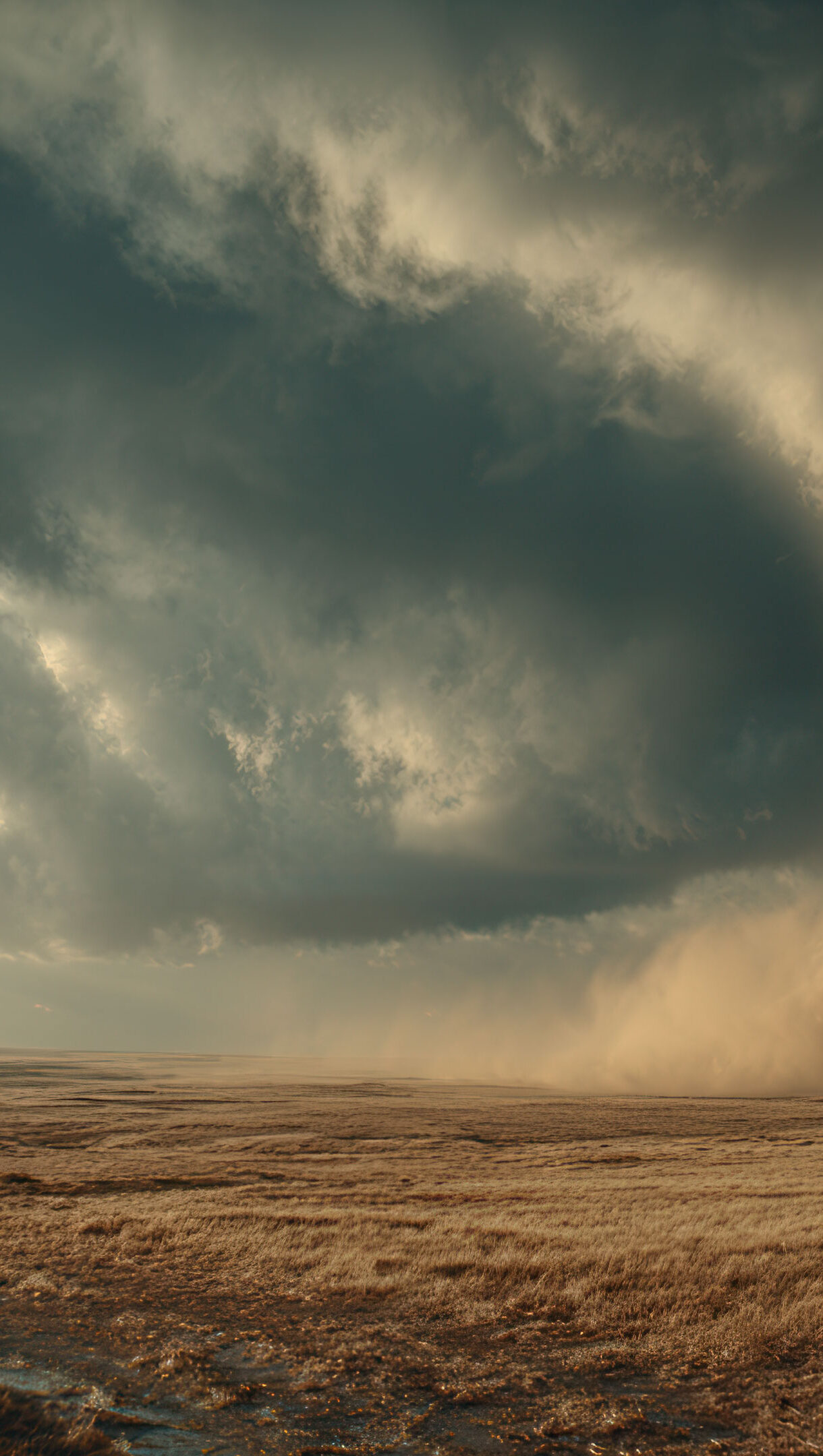 Sunlit Tornado Funnel Cloud Over Vast Open Plains