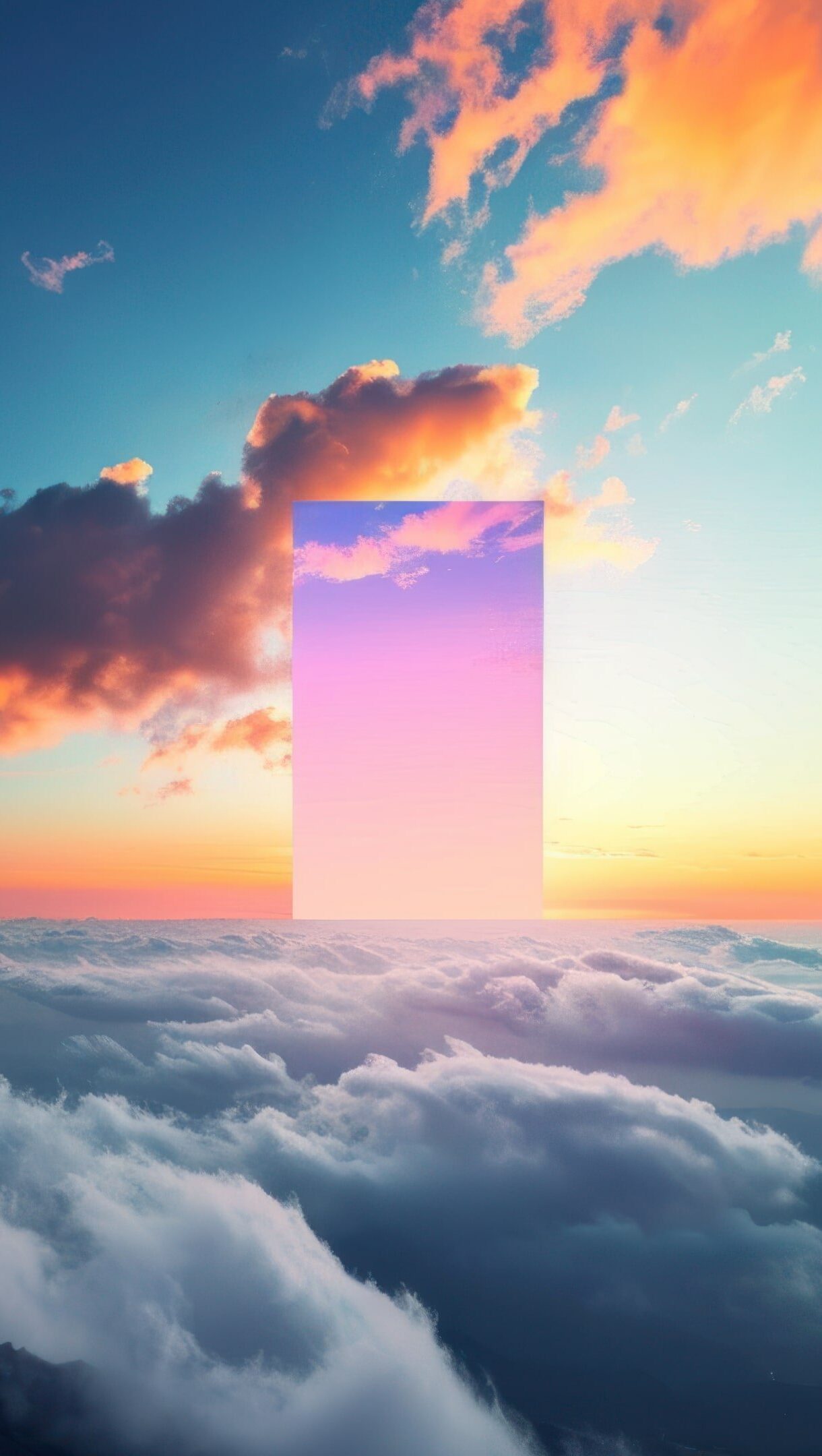 A breathtaking 4K wallpaper created by AI, depicting a mesmerizing sunrise above a blanket of clouds. The vivid colors of the rising sun cast a warm glow over the serene cloud layer, evoking a sense of tranquility and beauty. Simply click the download button to bring this masterpiece to life on your screen as a desktop wallpaper or save it for later in your wallpaper collection.