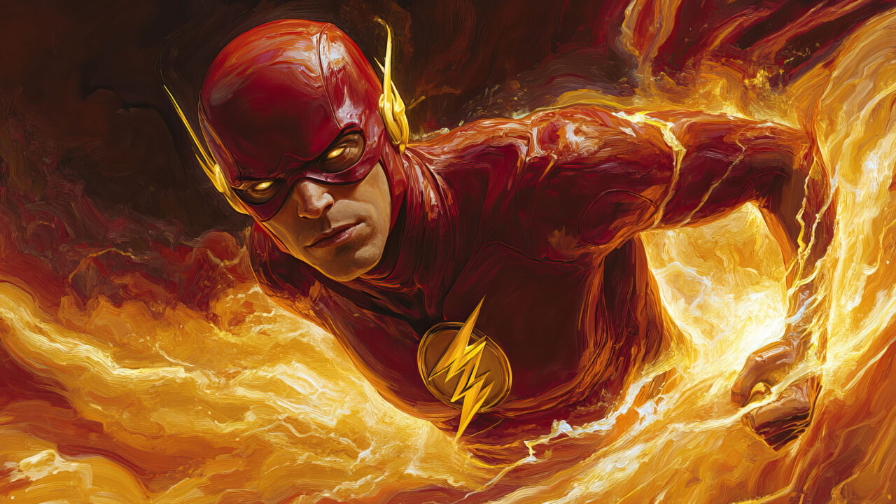 A dynamic 4K wallpaper featuring The Flash unleashed, showcasing the superhero in full sprint with lightning crackling around him. The vibrant colors and intense motion capture the essence of speed and power, making it a perfect choice for fans to set as their desktop or mobile wallpaper.