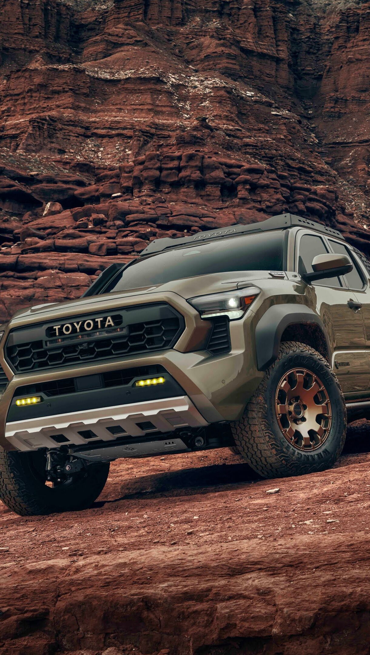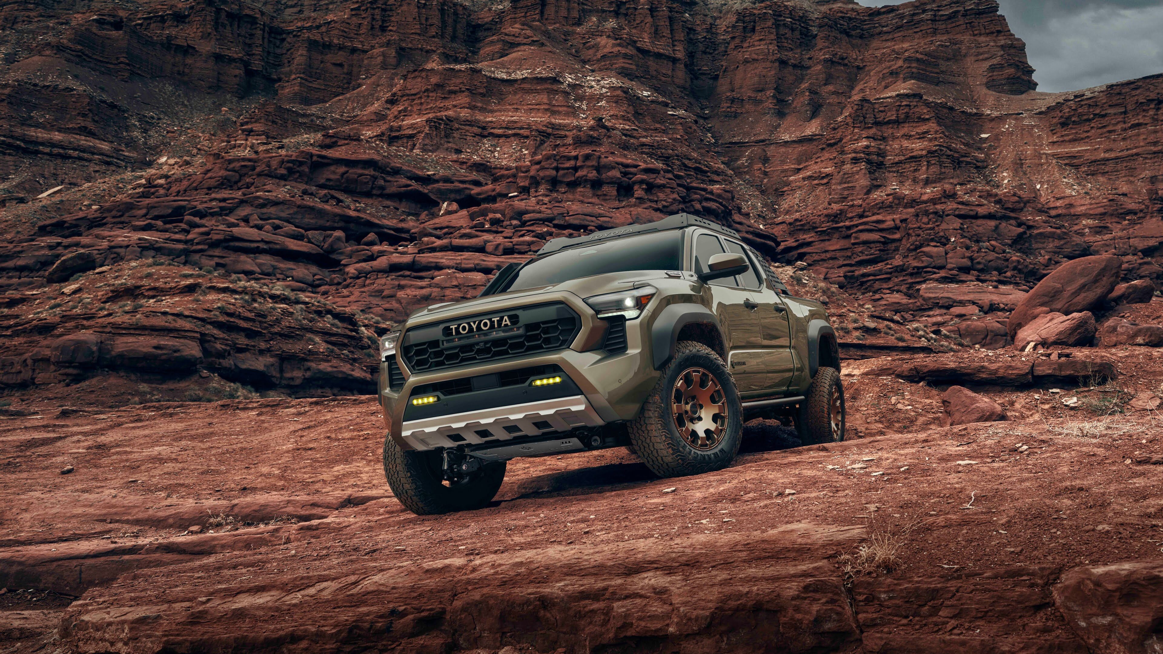 A high-resolution 4K wallpaper featuring the Toyota Tacoma Trailhunter, a capable pickup truck designed for off-road adventures, showcasing its rugged and adventurous spirit. Simply click the download button to bring this masterpiece to life on your screen as a desktop wallpaper or save it for later in your picture collection.