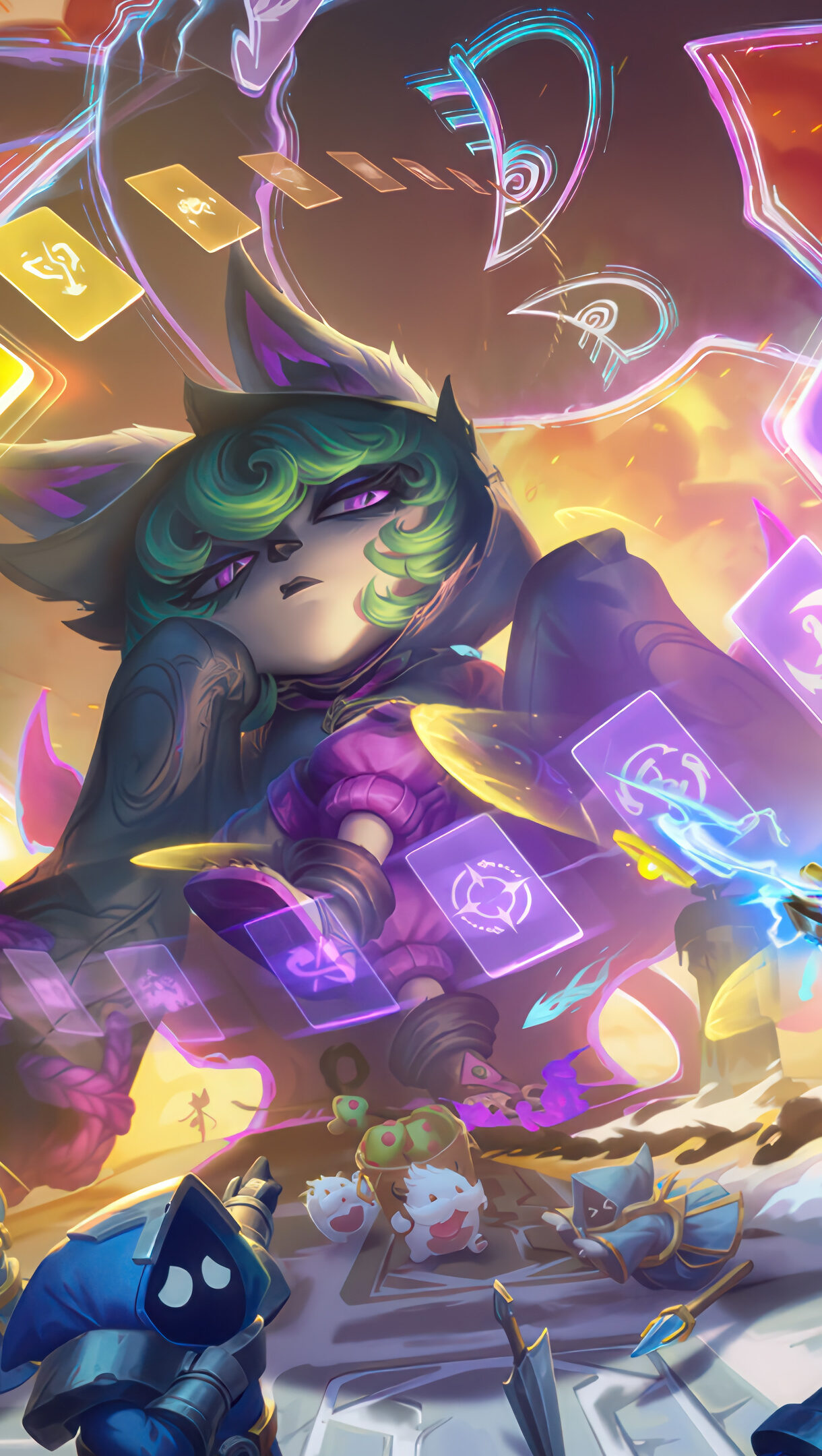 A spectacular 4K wallpaper captures the powerful clash between a dark, brooding Vex, surrounded by her glowing purple spectral magic, and a dynamically leaping Ezreal, firing a vibrant golden energy blast. The stark interplay of warm magical explosions and cool, shattered ice, combined with the intense expressions of the champions and the surrounding chaos, vividly portrays the epic magical confrontation.