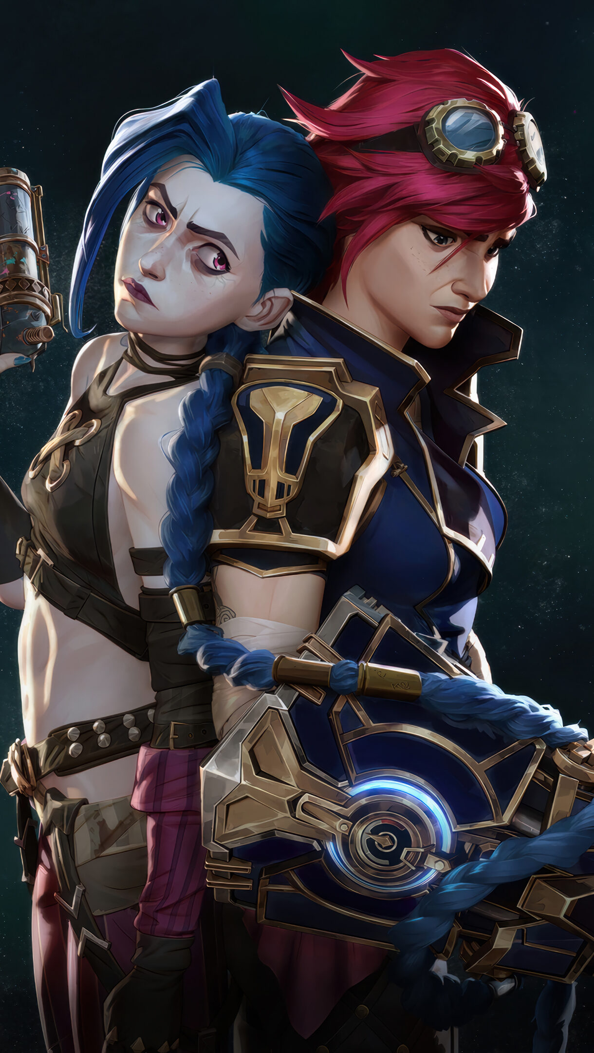 A stunning 4K wallpaper featuring Vi and Jinx from Arcane Season 2, capturing their intense relationship filled with conflict, emotion, and history. The artwork showcases their contrasting personalities, set against a visually dramatic and cinematic backdrop, making it a perfect choice for fans of Arcane and League of Legends. Simply click the download button to bring this masterpiece to life on your screen as a desktop wallpaper or save it for later in your picture collection.