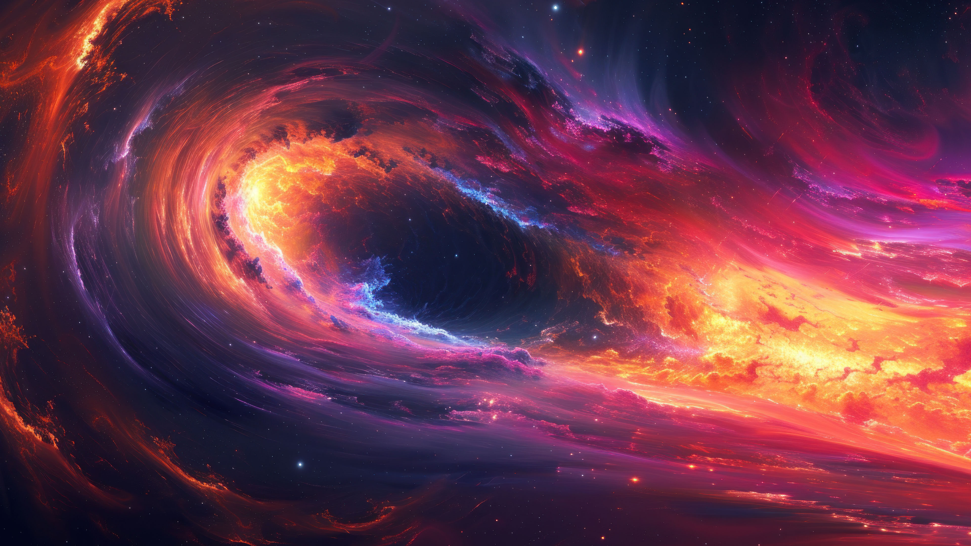 Immerse yourself in the dynamic beauty of the cosmos with this AI-generated 4K wallpaper featuring a vibrant flow in space. Perfect for high-resolution displays, the digital art composition captures the energetic and celestial essence, creating a visually captivating experience that transports you to the wonders of the universe. Simply click the download button to bring this masterpiece to life on your screen as a desktop wallpaper or save it for later in your wallpaper collection.