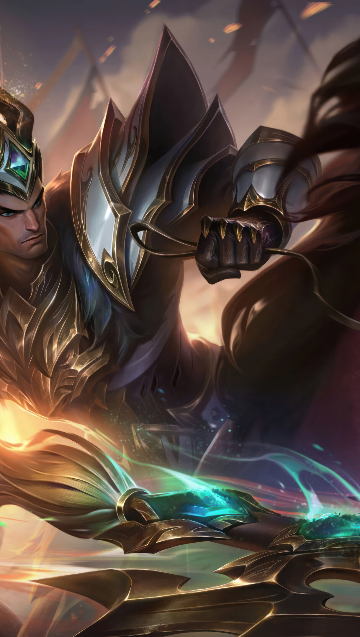League of Legends 4K wallpaper featuring the Warring Kingdom Jarvan IV LoL skin splash art, with Jarvan IV standing proud with his spear in a battle-ready pose amidst a fiery warzone. Unleash Your Inner Creativity with High-Quality Wallpapers. AI-generated and sourced wallpapers available in High Quality Resolution. Simply click the download button to bring these masterpieces to life on your screen as a desktop wallpaper or save it for later in your picture collection.