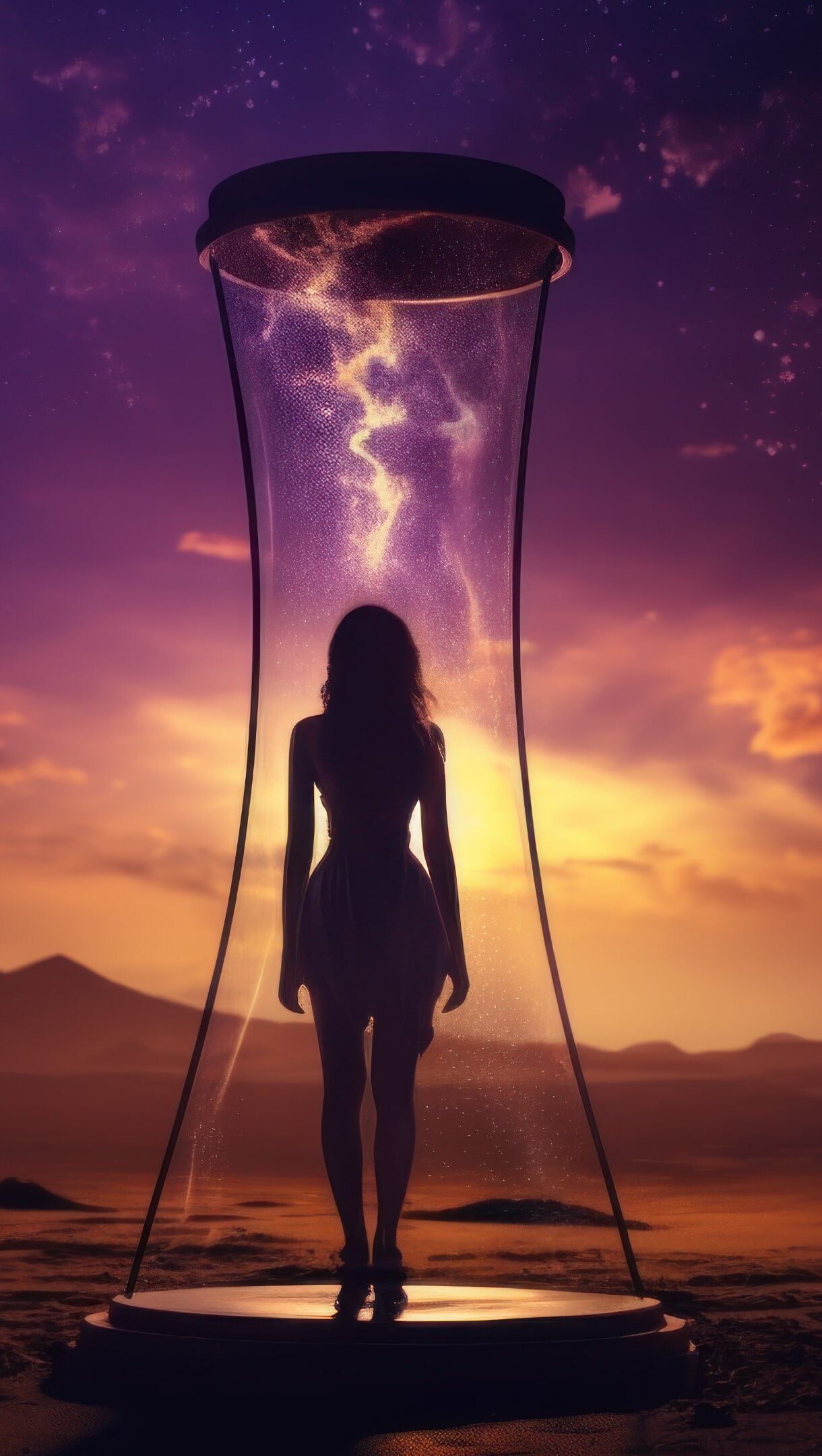 A captivating 4K wallpaper created by AI, featuring a woman enclosed in a futuristic capsule, a stunning digital illustration that embodies a sci-fi concept, perfect for enhancing your desktop background. Simply click the download button to bring this masterpiece to life on your screen as a desktop wallpaper or save it for later in your picture collection.